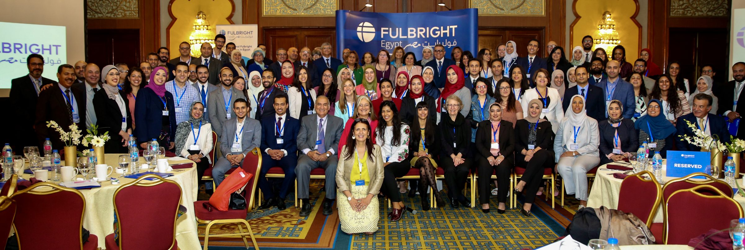 On October 28, 2019, the Binational Fulbright Commission in Egypt (BFCE) hosted its 5th Annual Fulbright Alumni Conference at the Cairo Marriott Hotel which was followed by a Reception at the residence of the U.S. Embassy in Cairo’s Deputy Chief of Mission, Ms. Dorothy Shea. At the Conference, recently returned Fulbright program alumni gave presentations on the research they conducted and courses they took while in the United States, as well as engaged in discussions with fellow Fulbright alumni circle members on ways to collaborate. During Academic Year 2018-2019, BFCE awarded 117 grants for Egyptians to conduct research, pursue Master’s degrees, attend professional development programs or lecture in the U.S. Guests were welcomed by Fulbright Commission Executive Director, Dr. Maggie Nassif and the Fulbright team. Deputy Minister of Higher Education, Dr. Amr Adly and Minister-Counselor for Public Affairs at the U.S. Embassy in Cairo, Ms. Helen Lafave, who serve on the Board of Directors of BFCE, gave an overview of the collaborative projects and initiatives that they are overseeing to address priorities in higher education in Egypt.