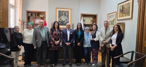 The team was received by Dr. Yasser El-Sayed, Dean of the Faculty of Fine Arts, Dr. Sherif Hassan, Dean of the Faculty of Applied Arts and the vice deans. The visit was coordinated by Dr. Esraa Yasser, International Relations Director at the university.