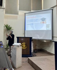 The Fulbright team, led by Dr. Maggie Nassif, Executive Director, accompanied by Ms. Noha Salah, Senior Program Officer, visited the Faculty of Fine Arts and delivered an information session on Fulbright grants for artists and museum and cultural institution management. The visit was held under the auspices of Dr. Sayed Kandil, President of Capital University.